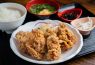 新定番の“大地の醤油からあげ定食”640円。オーナーの地元・川辺産の上原醤油を使用し、香ばしさと味の深みを引き出す