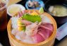 “南薩海鮮丼”ドリンク付きで1980円。サンセットブリッジを眺めながら、地元の海の幸に舌鼓