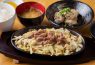 “スタミナ焼定食”(850円/手前)、“とろとろなんこつ”(550円/右奥)。「リープを見た」と伝えるとソフトドリンク一杯サービス