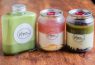 左から抹茶らて、ストロベリーレアチーズケーキ、生抹茶チーズケーキ。個性的な容器も愛らしい