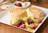 “フルーツスペシャルパンケーキ”1518円。注文ごとにメレンゲを立てて焼き上げる、ふわとろ食感のパンケーキに季節のフルーツを添えて