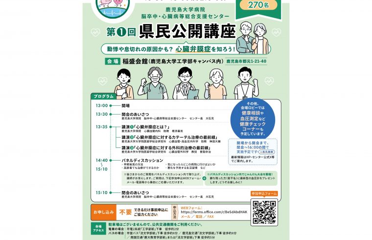 //【鹿児島大学病院 脳卒中・心臓病等総合支援センター】第1回県民公開講座開催!