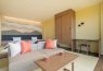 客室は全室、霧島高原の先に広がる錦江湾や桜島の絶景を望めるだけでなく、地域ならではの伝統工芸や特徴的な素材を使い、現代的なモチーフに設えた、鹿児島の大地の恵みを感じられる「薩摩シラス大地の間」。火山の火砕流などが堆積してできたシラスを職人の技で磨き上げたベッドボードは、霧島連山をイメージ。高級感がありつつ、上品に部屋に溶け込みます。大きな窓から見える絶景と合わせて、心に風が吹き抜けるような爽やかさをもたらしています。寝具にもこだわり、雲のように柔らかく体を包み込むオリジナルマットレス「ふわくもスリープ」が快適な眠りへと導きます。
